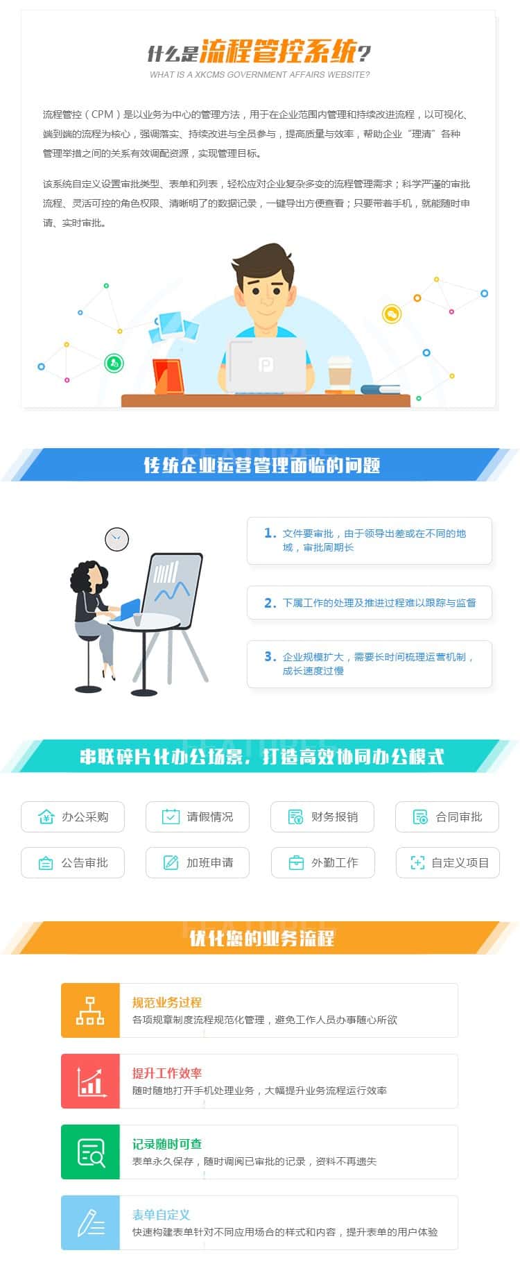 该系统自定义设置审批类型、表单和列表,轻松应对企业复杂多变的流程管理需求;科学严谨的审批流程、灵活可控的角色权限、清晰明了的数据记录,一键导出方便查看,只要带着手机,就能随时申请、实时审批。